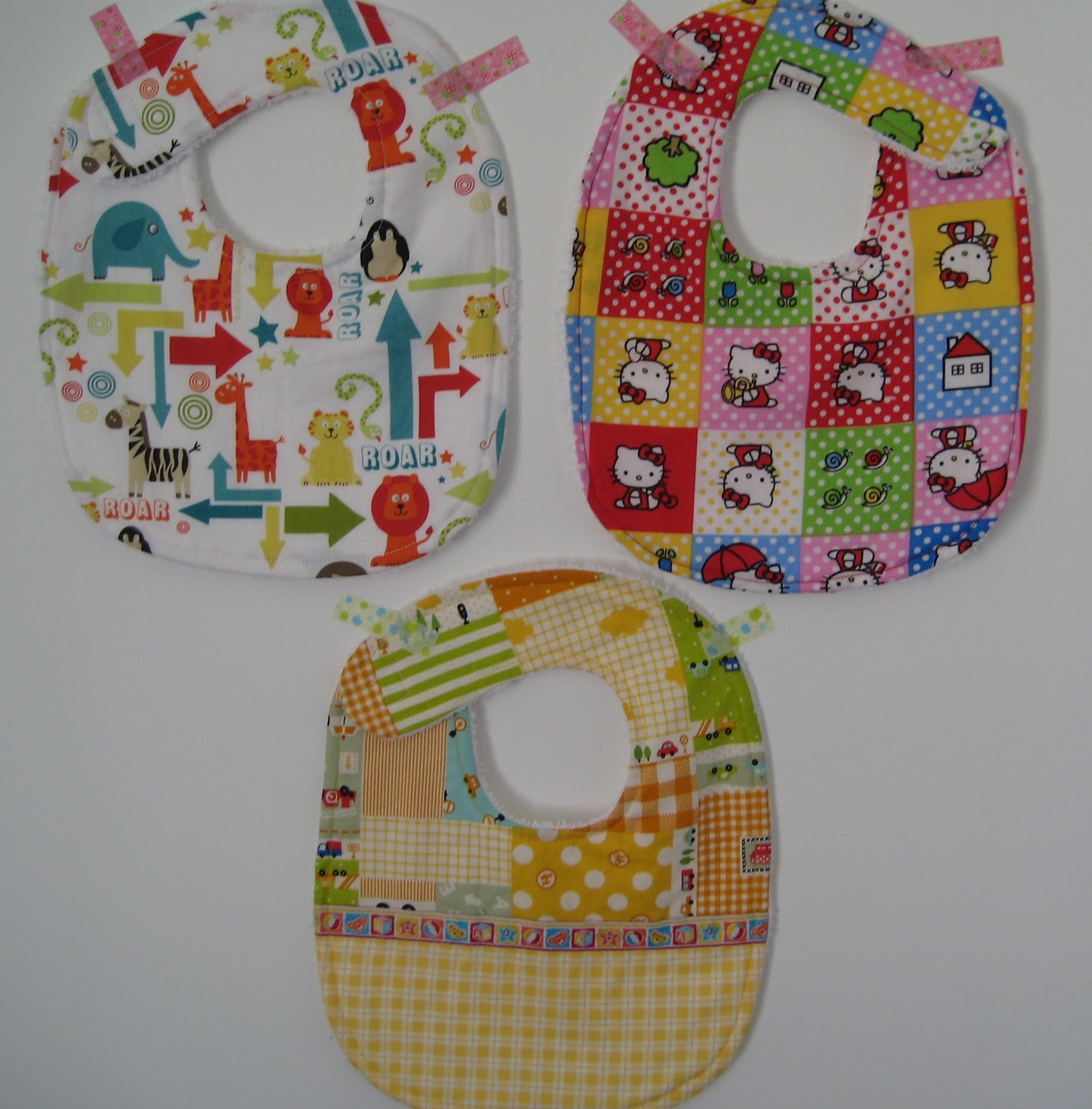 Cada babete é feito em tecido 100% algodão e forrado a turco branco na parte interior. Abotoam lateralmente com velcro tornando o seu uso bastante simples.
