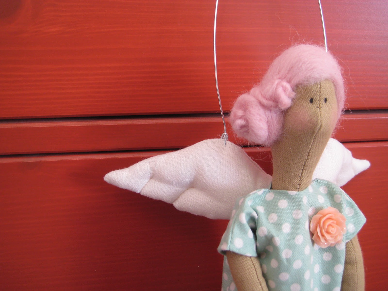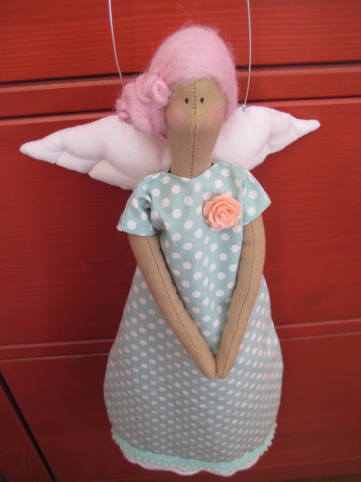Uma amiga minha pediu-me para fazer um anjo Tilda e um tapete de chávena para a filha oferecer. Com base nas cores indicadas (tons suaves e azul turquesa) foi este o resultado.